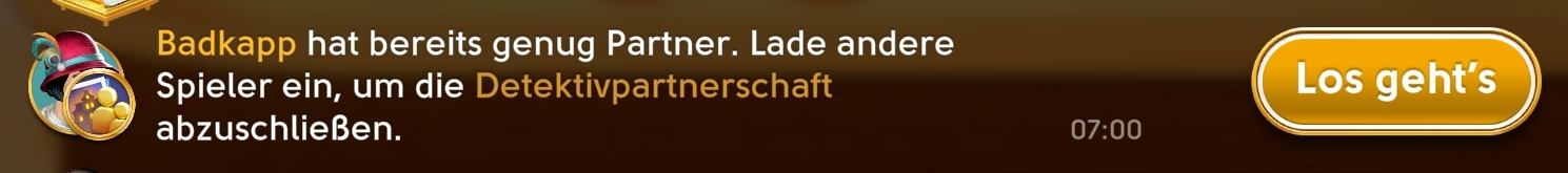 Hat ein Spieler bereits Partner für alle Räume, wird auch dies dann angezeigt: