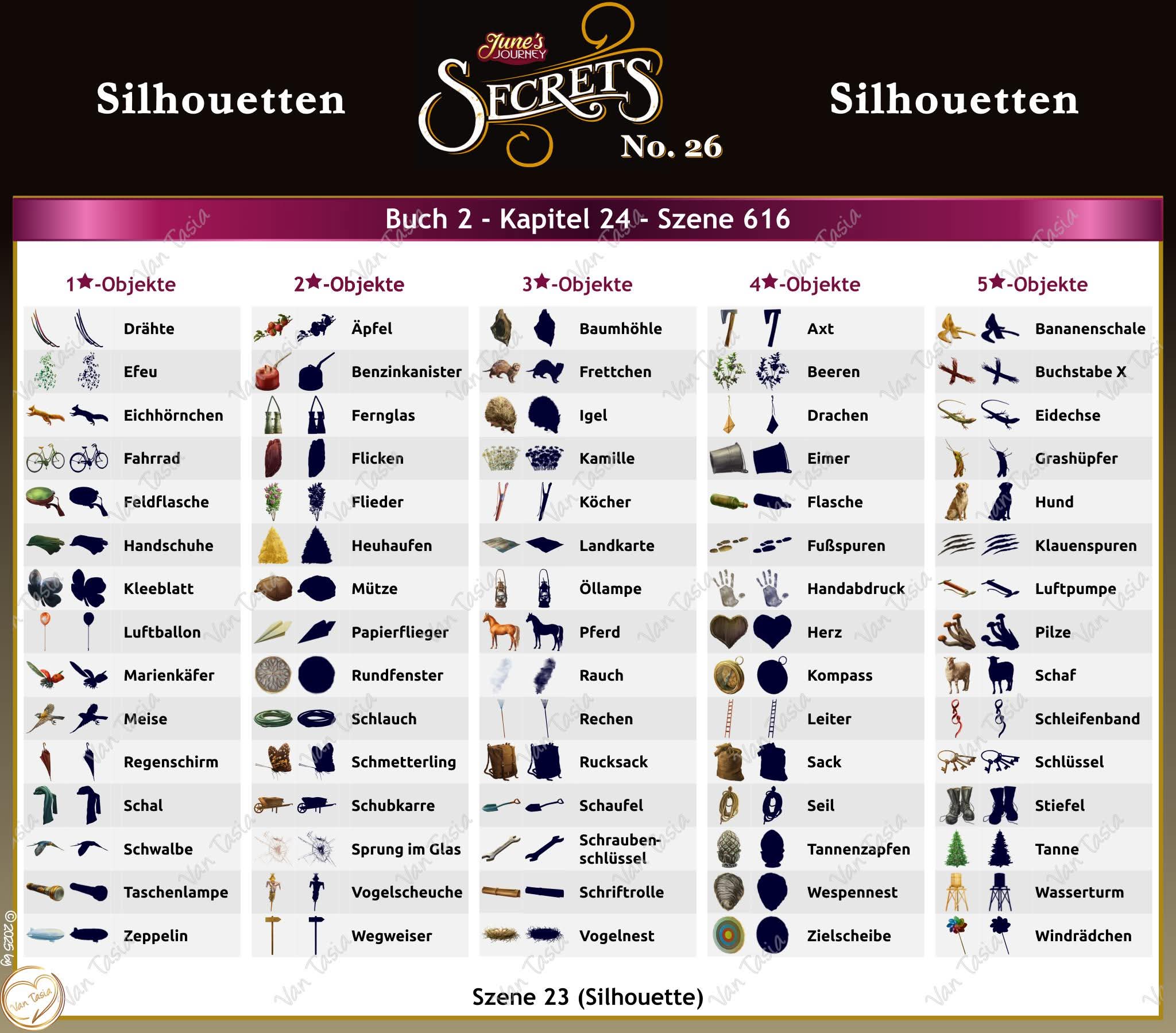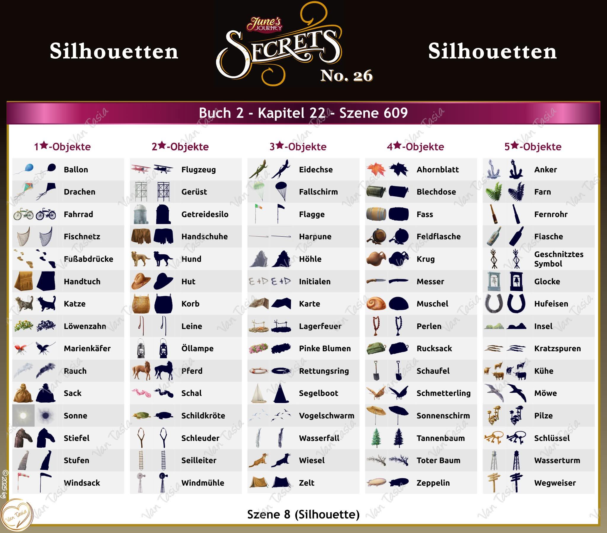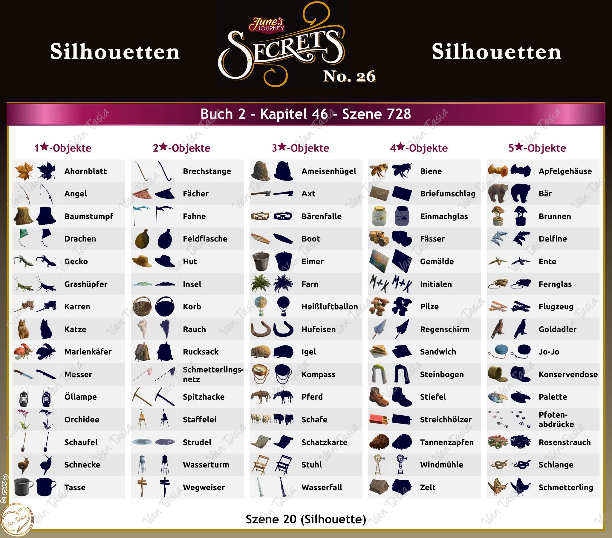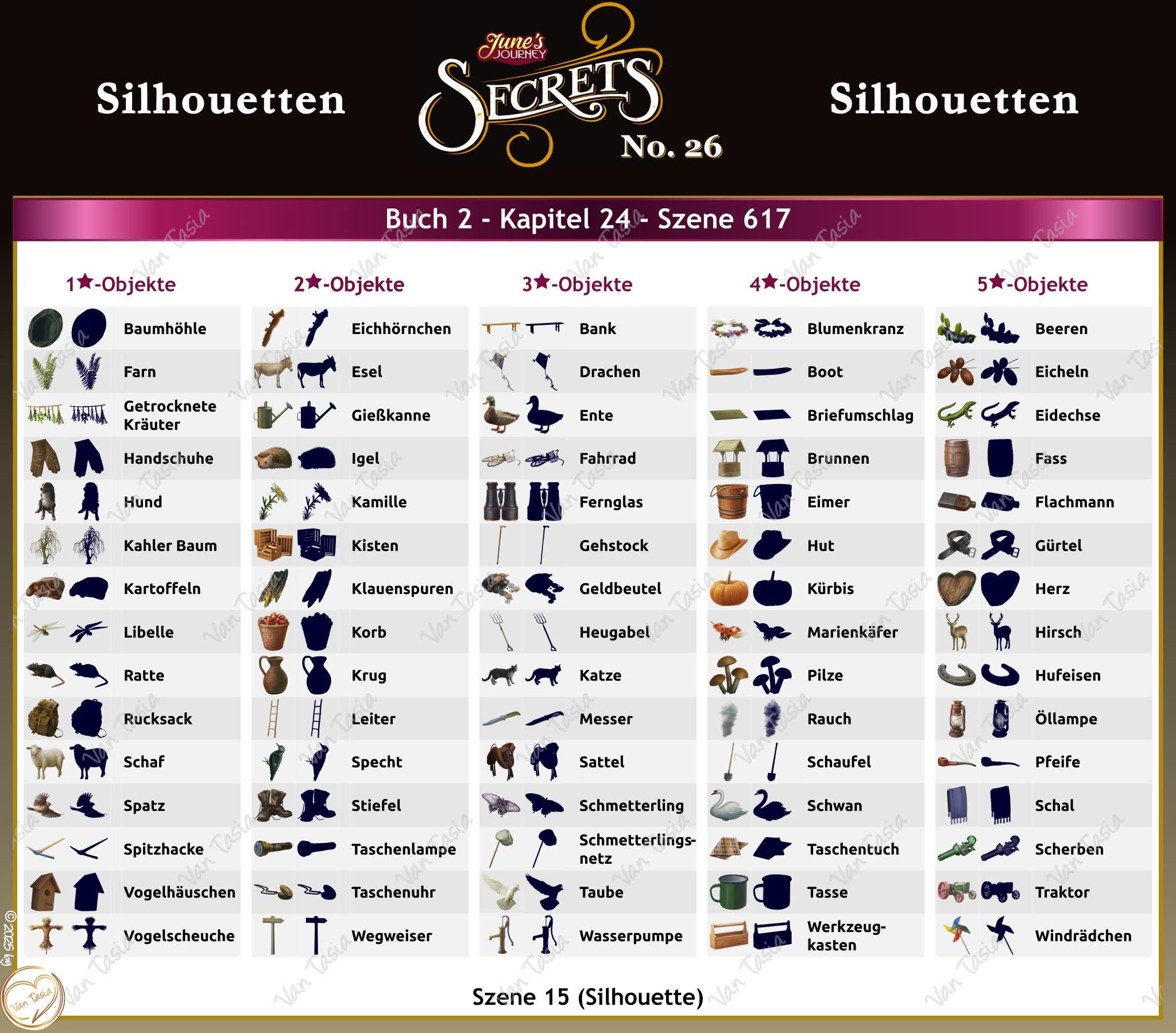 Sie ein Bild mit den gesuchten Objekten Hier finden Sie eine Aufstellung aller Silhouetten und dem eigentlichen Objekt