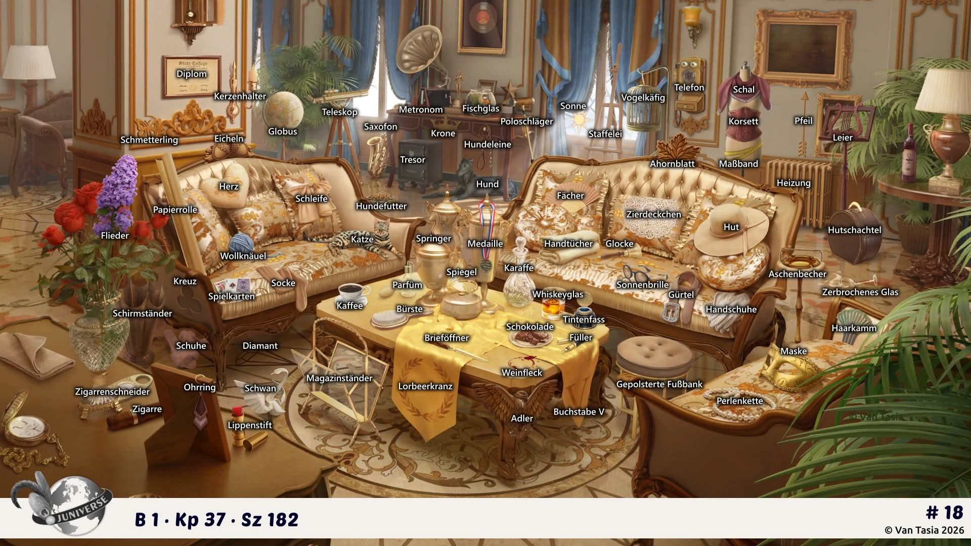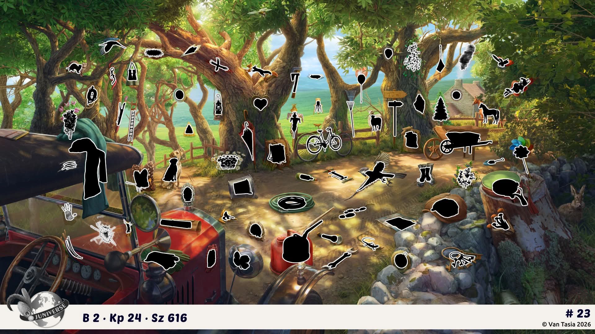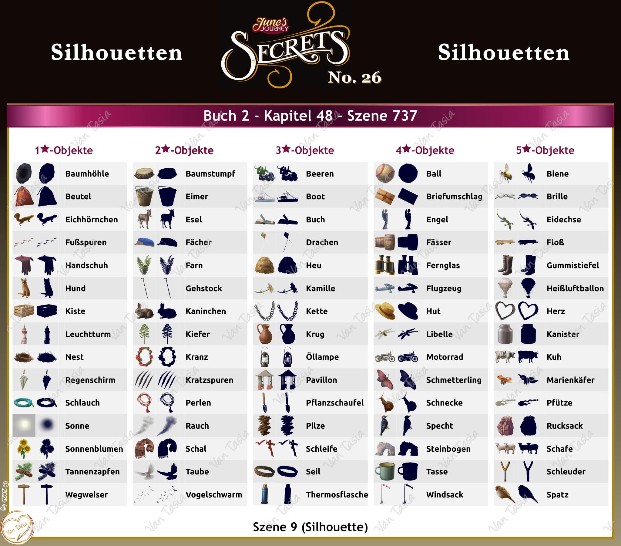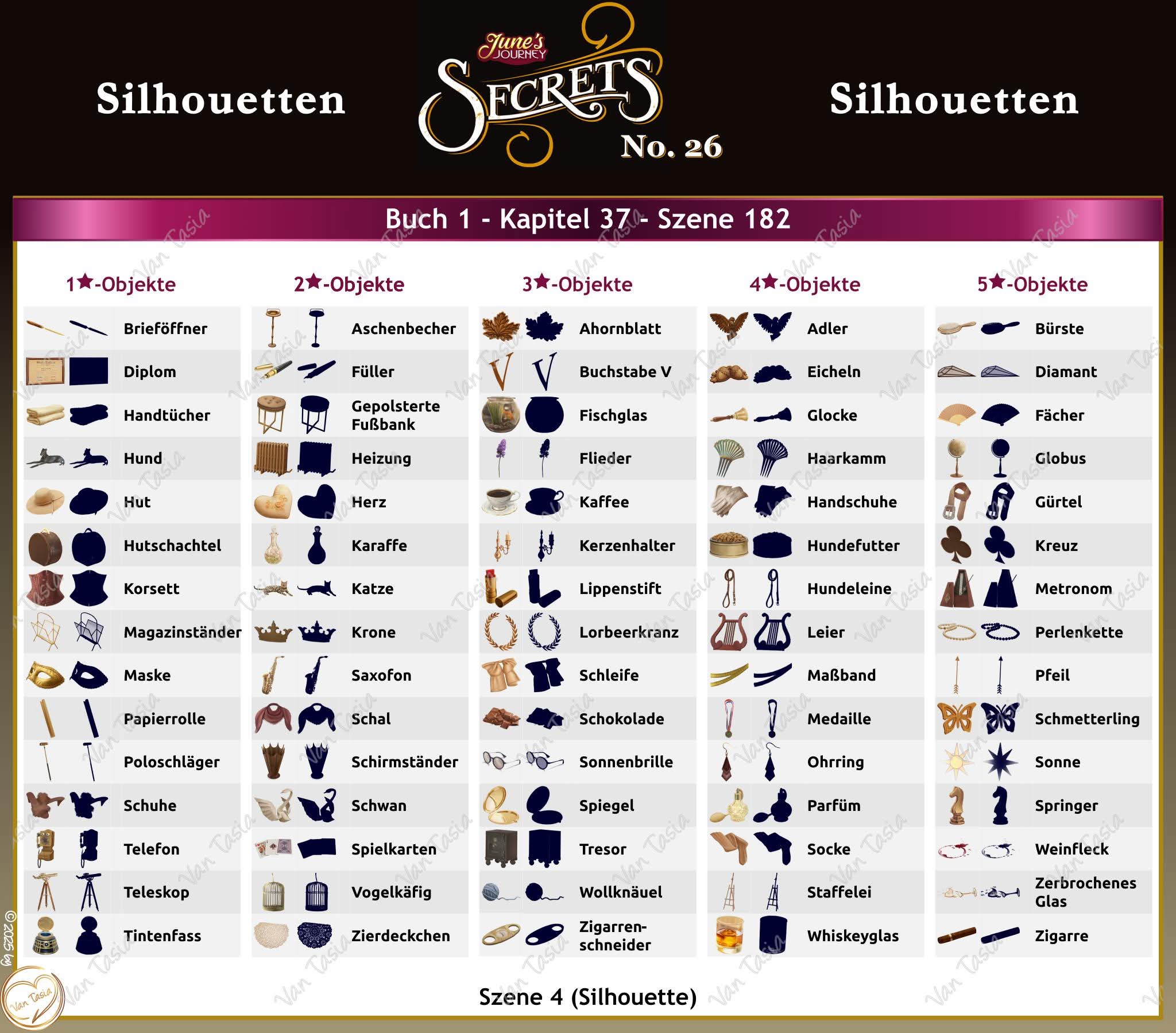 Sie ein Bild mit den gesuchten Objekten Hier finden Sie eine Aufstellung aller Silhouetten und dem eigentlichen Objekt