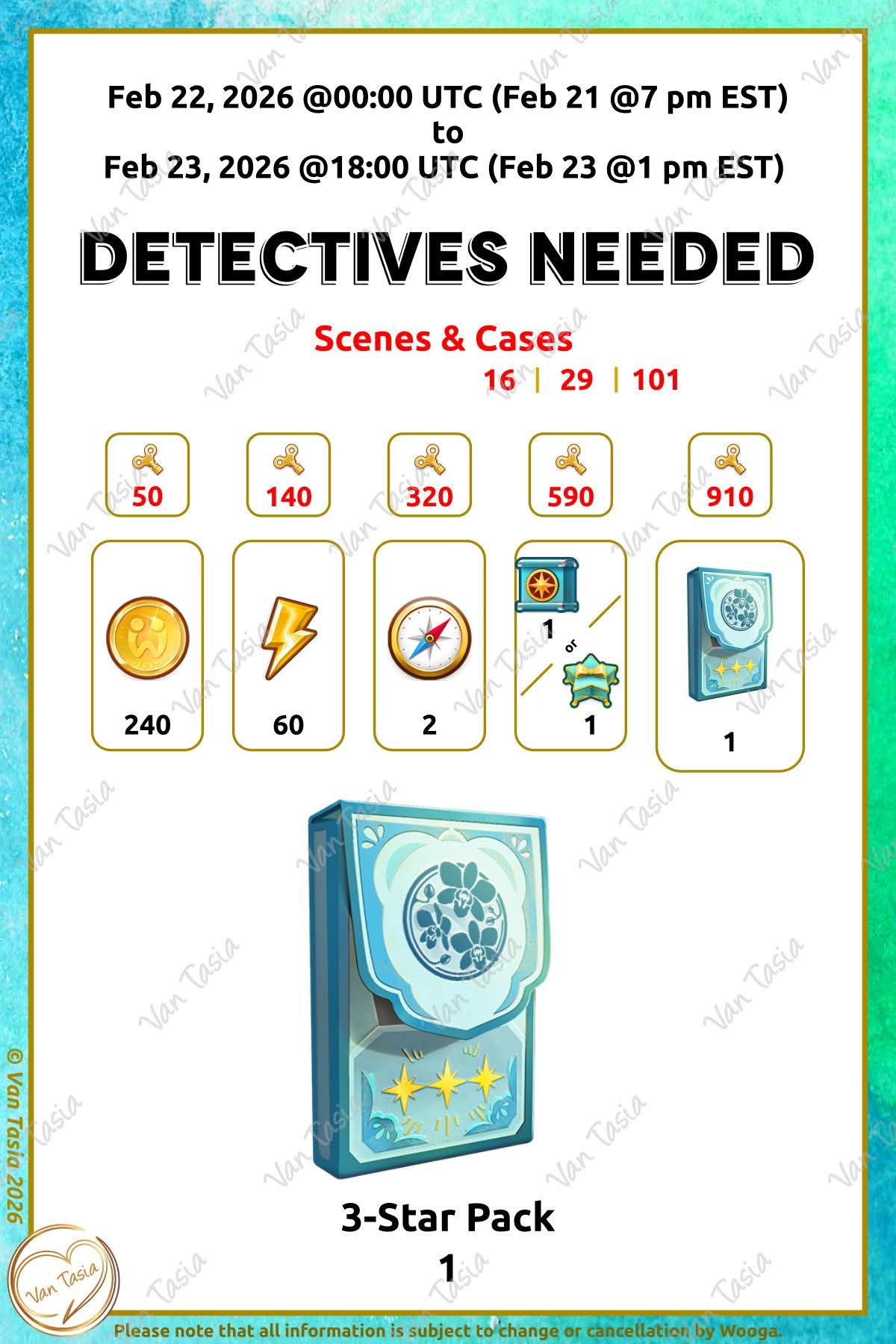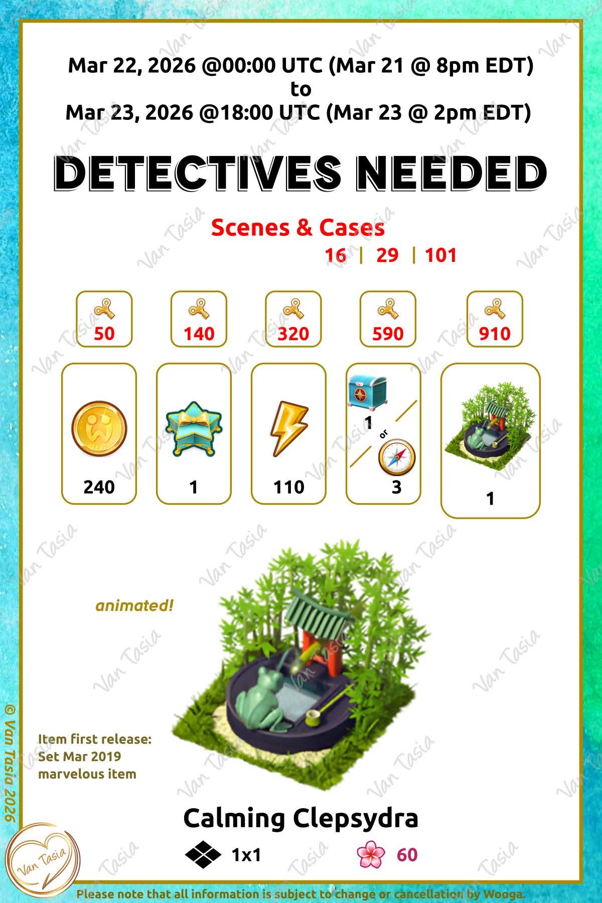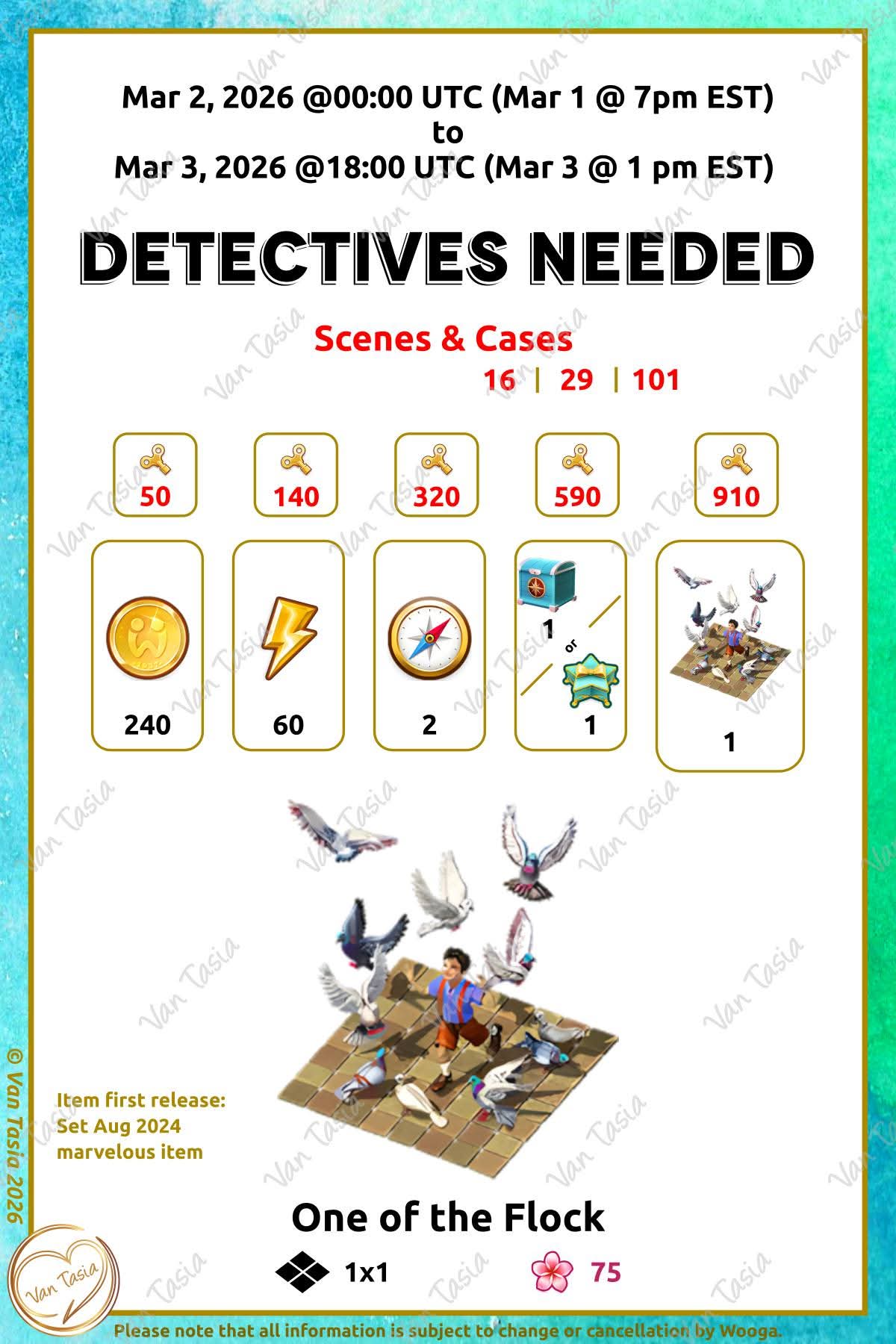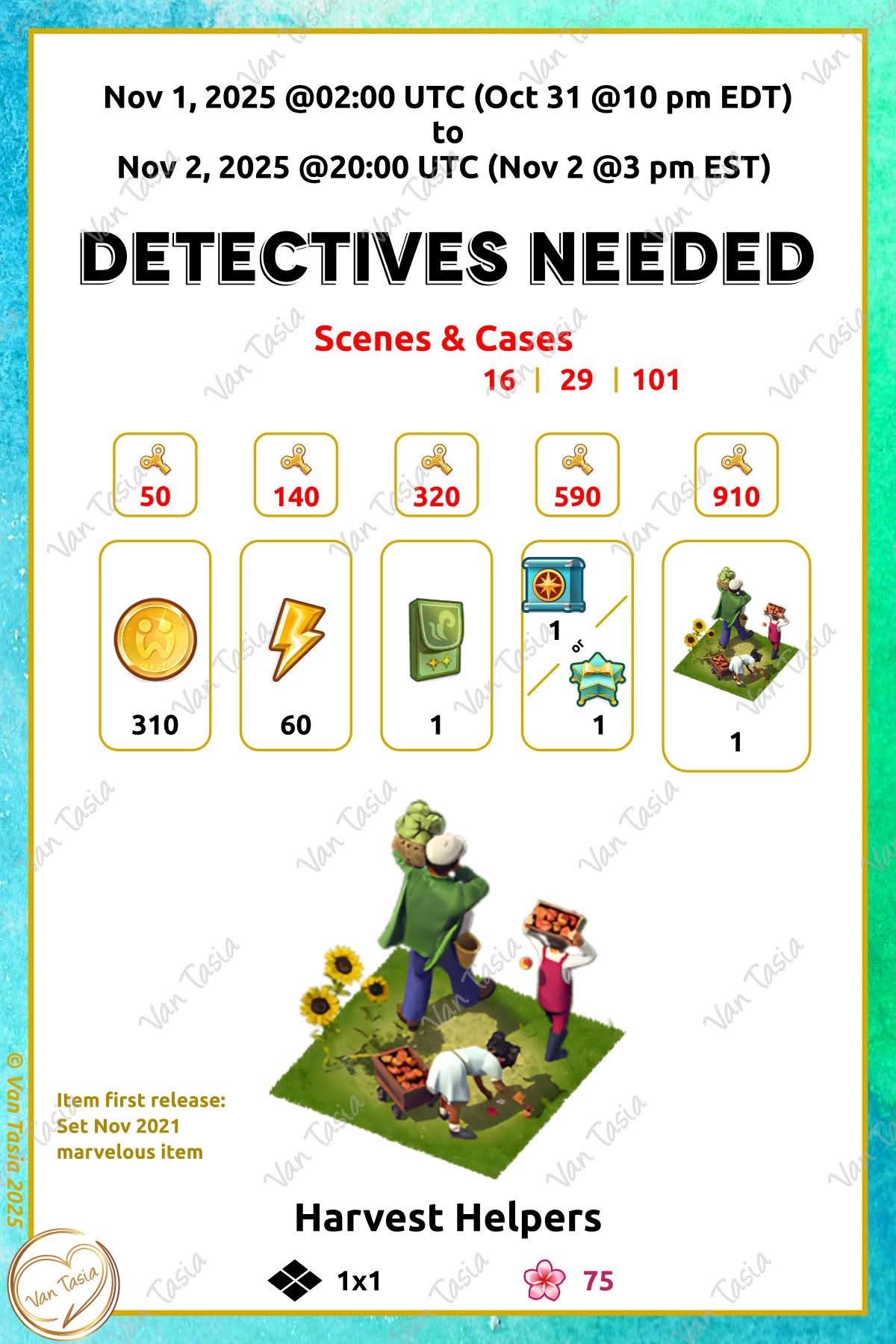 = Detective partner = Detectives needed |