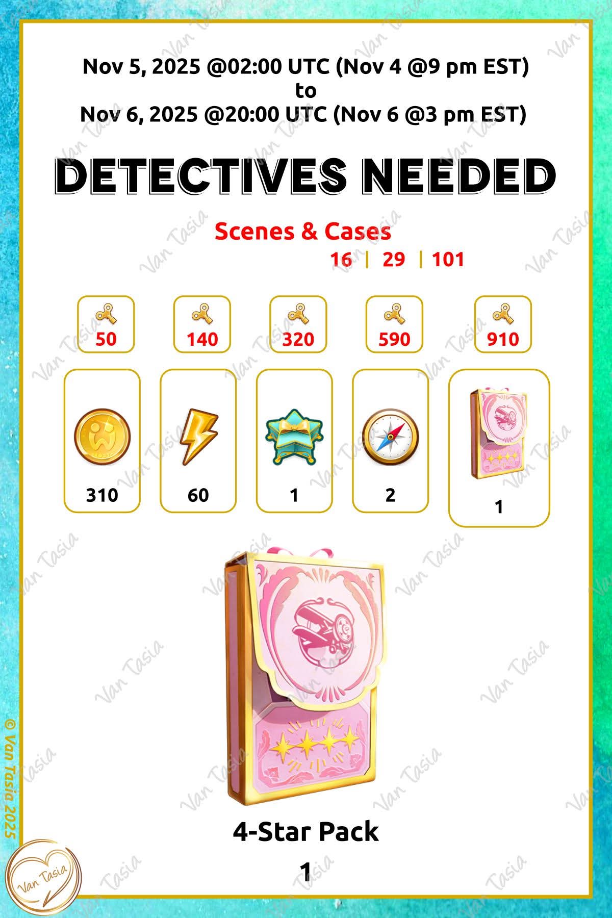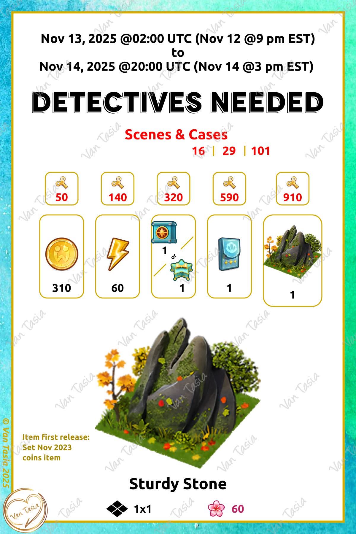 = Detective partner = Detectives needed |